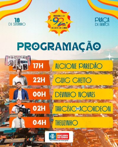 A Prefeitura reforça o convite a toda população para participar desse momento histórico, celebrando a cultura, a música e a identidade do povo euclidense.