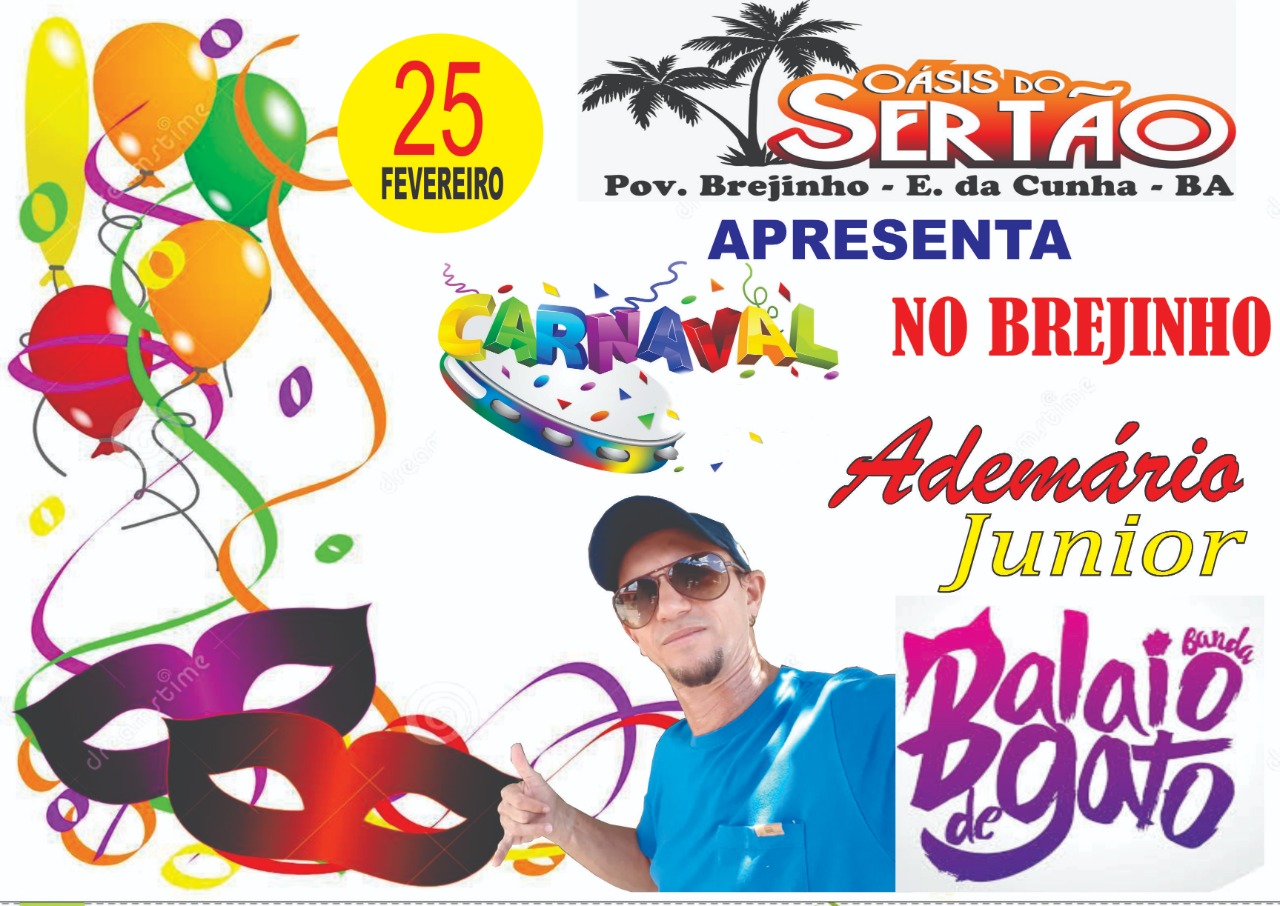 Nesse feriado de Carnaval, terça-feira (25), a tarde será ao som da Balaio de Gato e Ademário Junior, no clube aquático Oásis do Sertão que fica localizado no povoado Brejinho em Euclides da Cunha.