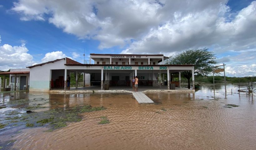 Enchente do Rio Vaza Barris deixa Pousada e Balneário Beira Rio ilhados em Canudos